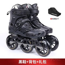 성인용 인라인 스케이트 3륜 남녀공용 초보자 입문용, 블랙 슈즈 + 백팩