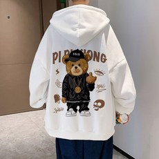 ANYOU 남자 가을 겨울 오버핏 캐릭터 후드티