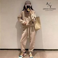 ANYOU 상의+바지 트레이닝세트 여성용 맨투맨 오버핏맨투맨