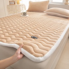 SeekFun 침대패드 극세사 매트리스 누빔 미끄럼방지 소프트 다운 코튼 따뜻한 겨울, 크림브라운