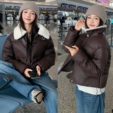 Modern Fashion 여성 트렌디 가죽 숏 패딩 경량 데일리룩 A06
