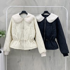 [행복여] 다니아 양털 둥근 빅카라 허리 스트링 퀼팅 패딩 점퍼