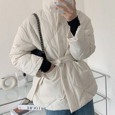 벨트 퍼 카라넥 숏 레더 패딩 하이넥 누빔 여성 점퍼 겨울 아우터