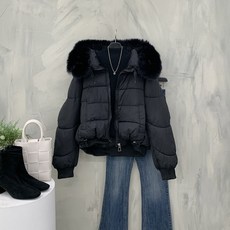 POMTOR 겨울 패딩 여 숏 패션 오버핏 패딩 털 칼라 코트 도톰 패딩 점퍼