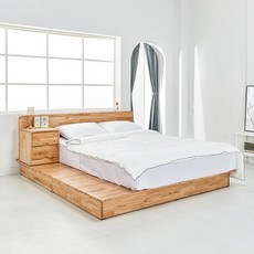 레이 3단 멀티 서랍형 LED 침대 매트리스 세트 싱글 슈퍼싱글 더블 퀸, 레이 3단 수납형 [오크] 더블, 파워본넬 자가드 매트
