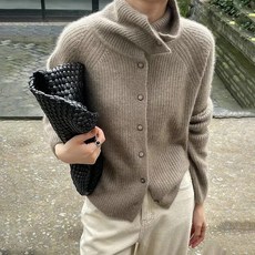 제니트 여성 포근한 투웨이 하찌 꽈배기 루즈핏 하이넥 니트 긴팔 집업 가디건