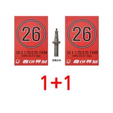 1+1 흥아 26 x 1.75/2.10/2.25 FV 48mm 26인치 MTB 자전거 튜브 프레스타, 26 x 1.75 프레스타 48mm, 2개