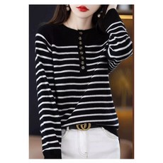 멋쟁이보물창고 겨울 정품 Ordos 100% 캐시미어 니트 라운드 넥 스트라이프 긴팔 스웨터 울 셔츠 여성용55 66 77