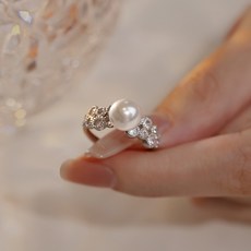 FONOW 진주 고급스럽고 모던한 가벼운 큐빅 진주 반지