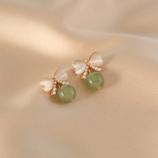 붓다베스트 여성용 재물운 리본 진주 옥 귀걸이