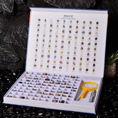 지구기억 100종 천연수정 마노 미네랄 광물함 학생 보석 선물 광석표본물, 1세트, 100가지 보석+도감+공구개