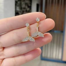 일성 18K 14K 여성 고래 꼬리 다이아몬드 귀걸이 패션 일상 생일 기념일 선물