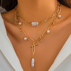 여성 레이어드 진주 포인트 골드체인 목걸이 J2119