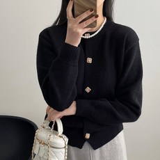ANYOU 여자 니트 부드럽고 편안한 스웨터 데일리 라운드넥 가디건