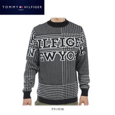 토미힐피거 골프 남성 치조 격자 무늬 로고 재가드 긴 소매 크루 넥 스웨터 THMA374