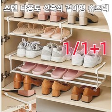 1/1+1 다용도/신축식 걸이형 슈즈랙 옷장 상하 분리 수납 선반 스테인리스 폭조절 슈즈랙, (1개)*화이트, 화이트
