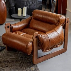 킹던 빈티지 푹신한 안락의자 거실 1인용소파 수유 가죽 릴렉스체어 라운지, 1개, 빈티지브라우니