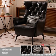 거실 호텔 복고풍 빈티지 가죽 싱글 소파 의자, 클래식블랙