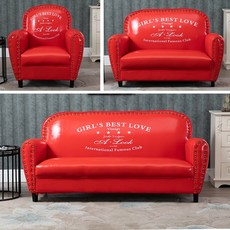 빈티지 소파 가죽 미국 복고풍 카페 휴게실 미용실 대기용 1인용 2인용 3인용, 레드