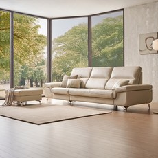 카폴라보로 벨루아 4인 천연 이태리 통가죽 소파+스툴, 크림