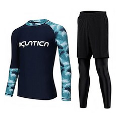 아쿠아티카 남성 래쉬가드 AQAMTS24017 상의 + PL 레깅스반바지 세트, 네이비(상의), 블랙(하의)