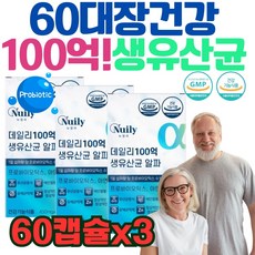 60대 장건강 락토바실러스 비피더스 프리바이오틱스 유산균 먹이 프락토 갈락토 올리고당 50대 70대 남자 남성 유익균 증식 유해균 억제 배변활동 장건강 도움 100억 생유산균, 3개, 60정
