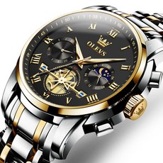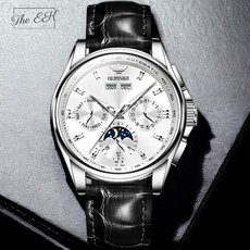 더이케이 남자명품시계 남자손목시계 메탈 oupinke 럭셔리 남성 크로노 그래프 오토매틱 기계식 가죽 밴드 시계 문 페이즈