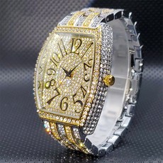 명품 럭셔리 다이아몬드 시계 남성 패션 반짝반짝 술통형 석영 시계 힙합 얼음 스테인리스강 방수 보석 시계 베스트셀러 제품