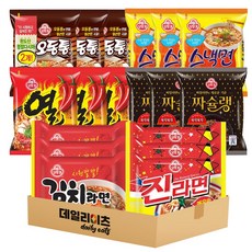 [데일리이츠] 오뚜기 봉지라면 6종류 총 18봉 (진라면매운맛3 김치라면3 짜슐랭3 열라면3 오동통면3 스낵면3), 1세트