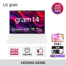 LG전자 2024 최신 그램 14인치 인텔 14세대 울트라5 윈도우11 16GB 256GB, 14ZD90S-GX56K, WIN11 Home, 화이트