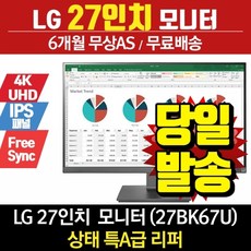 LG전자 LG 27인치 모니터 4K UHD 사무용 27BK67U 리퍼