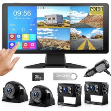 DVKNM 4K RV 백업 카메라 시스템 10.36인치 쿼드 스플릿 터치스크린 모니터 4 1080P HD 리어 뷰 DVR 녹화 블루투스 음악 USB 비디오 플레이 IP69 트레일, 없음, 2) 10.36 inch