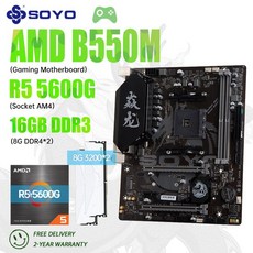 SOYO 듀얼 채널 RAM 게이밍 마더보드 키트 AMD B550M 및 AM4 ryzen 5 5600g CPU 및 DDR4 8GB X2 3200MHZ M.2 PCIE4.0 SSD, [03] 마더 보드 + CPU + RAM, 1개