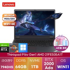 라이젠 씽크패드 P16v Gen1 AMD 21FES05A1T WIN11 고사양 고성능 노트북, WIN11 Pro, 64GB, 1TB