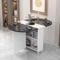 접이식4인식탁 대리석 접이식 식탁 확장형 이동식 다이닝 4인 테이블, 120*60*77 블랙화이트 타원형