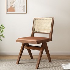 체어 라운지 안락의자 등나무 빈티지 고급형 스튜디오 라탄의자 테라스, N. 심플월넛+브라운가죽쿠션시트