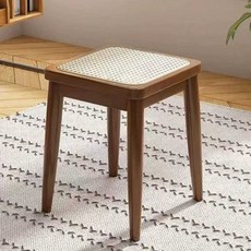 라탄 스툴 원목 현관 벤치 카페 간이의자 인테리어 화장대, 1개, 블랙
