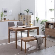 리바트 뉴시나몬 원목 식탁 + 토핑체어 2p + 벤치 세트 4인용 방문설치, 라이트 브라운(식탁), 그레이(의자), 라이트 브라운(벤치)
