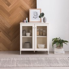 리바트 로티르 800 유리도어형 주방수납장 방문설치, 크림 아이보리
