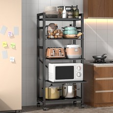 SeekFun 슬라이딩 주방 수납장 다층 다용도 수납 선반 전자레인지 선반 가정용 수납 선반 서랍형 인출식 레일 선반 5단, 블랙