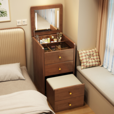 밀턴 콘솔 원목 화장대 서랍장 의자 거울 수납 조명 스툴 틈새 led 엔틱 입식, 월넛
