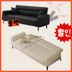 슬리안 접이식 3인용 등받이 각도조절 소파베드, 블랙