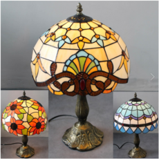 스테인글라스 조명 레트로 스테인드글라스 스탠드, 오렌지 다이아몬드 체크 20cm 폭
