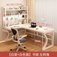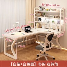코너형 책상 책장 세트 서재 학생 원목 가구, 120x80x75cm, 화이트+화이트+오른쪽코너