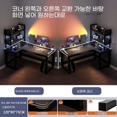 게이밍 데스크 ㄱ자 L자 코너 컴퓨터 책 1400 1600, 140x100cm블랙오른쪽모델+80CM선반