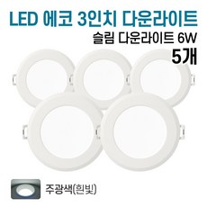라인조명 LED 에코 3인치 다운라이트 6w (주광/전구/주백), 5개, 주광색(흰빛)