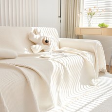 LINSHU 물세택 가능 와플 소파커버 전방위 사계절 공용, 크림 화이트, 1개