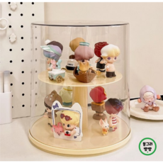 동그리빵빵 깔끔한 360도 회전 피규어 보관함 장식장 크림옐로우, 1개
