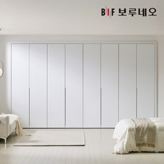 보루네오 히든하프 여닫이 붙박이장 360cm 매립형 손잡이 12자, 화이트 360cm