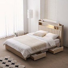 [KT알파쇼핑]보루네오 아르메 브릭스 LED 서랍형 침대 Q_독립 매트리스, 백아카시아, 백아카시아